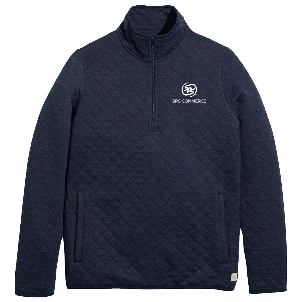 The custom logo Marine Layer Women's Navy Heather Corbet Quilted Pullover offers a stylish, warm giveaway gift.